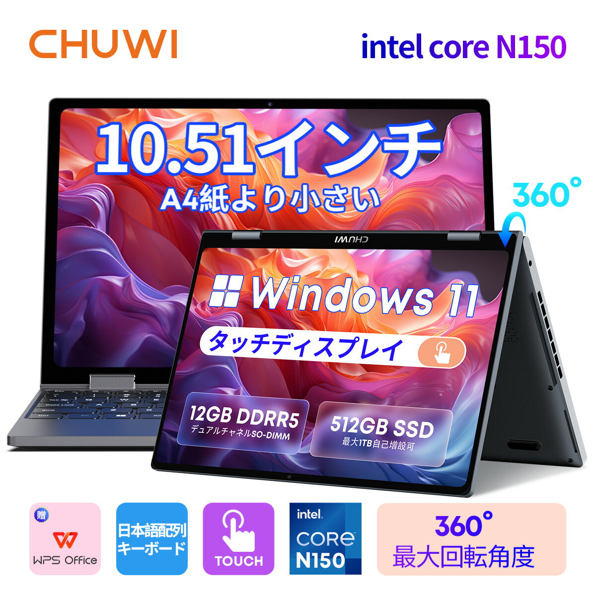 2. 2025 CHUWI 2in1 ノートパソコン MiniBook X Windows 11【日本語キーボード】Celeron N150...